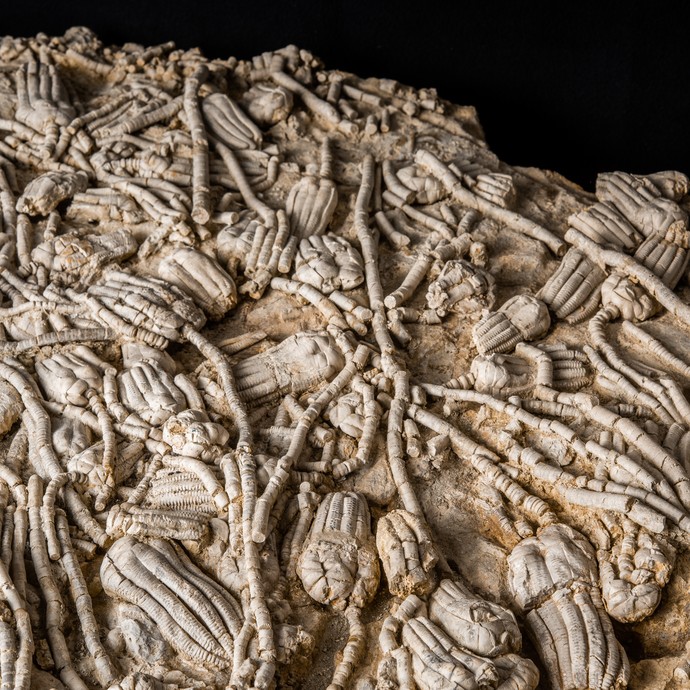 Ausschnitt aus einer 3×4 m messenden Platte mit Seelilien aus der Trias von Bad Driburg. Foto: LWL/Steinweg